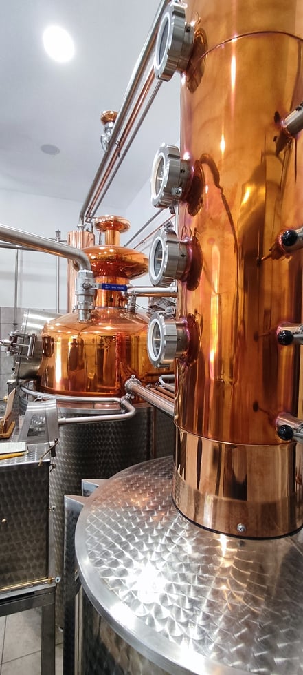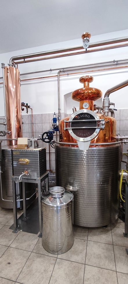 Üzemünkben "hagyományos kisüsti", úgynevezett kétlépcsős lepárló berendezés található, 600 literes főző- és 370 literes finomító üsttel, valamint üzembe helyeztünk egy új 450 literes "aromatornyos" egylépcsős lepárló berendezést is.